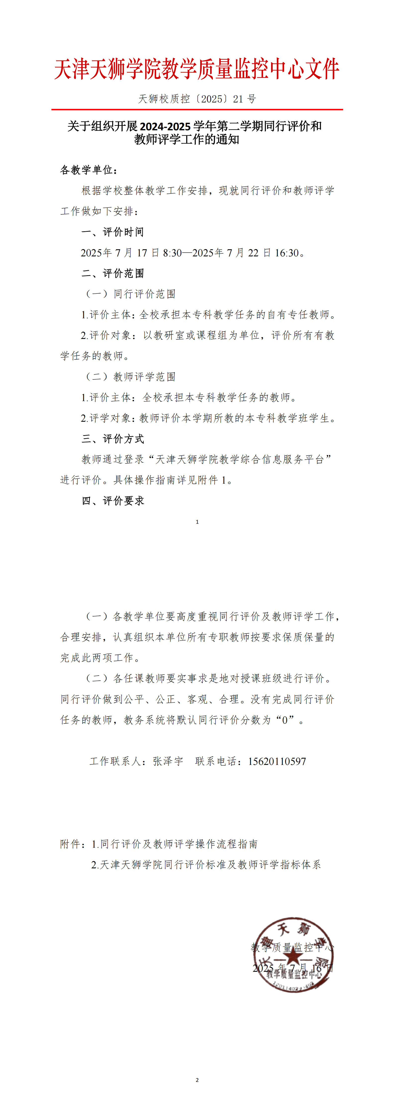 关于组织开展2024-2025学年第二学期同行评价和教师评学工作的通知